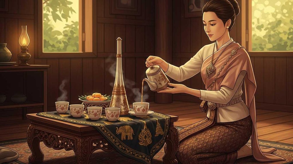 Употребление тайского чая прочно связано с ритуалами гостеприимства, семейными встречами и публичными мероприятиями. Зачастую чаепитие становится поводом для выражения уважения и укрепления социальных связей. В праздничные дни подают специальные сорта чая, символизирующие благополучие и удачу.