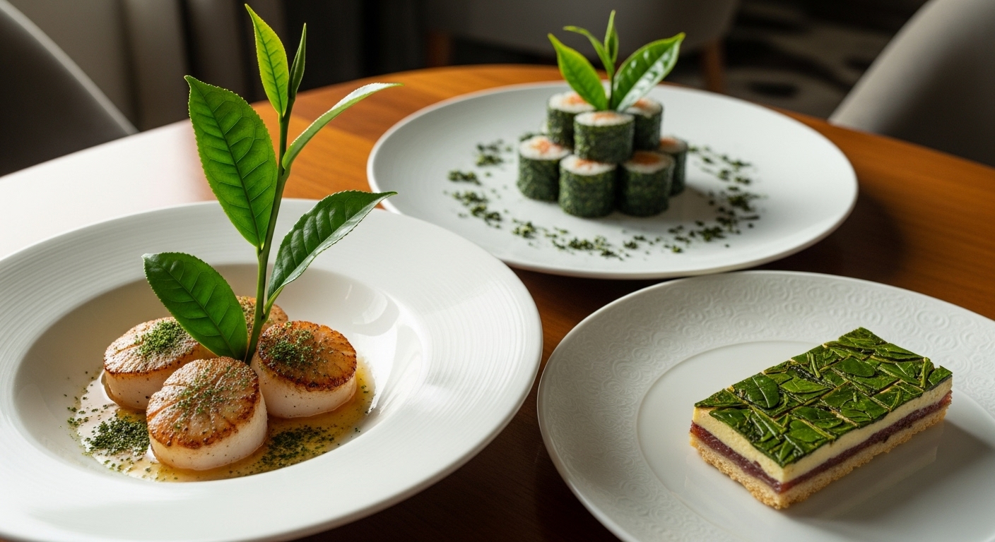 - Выпечка и десерты — чайные листья становятся основой для теста или добавкой к кремам, вареньям и желе.