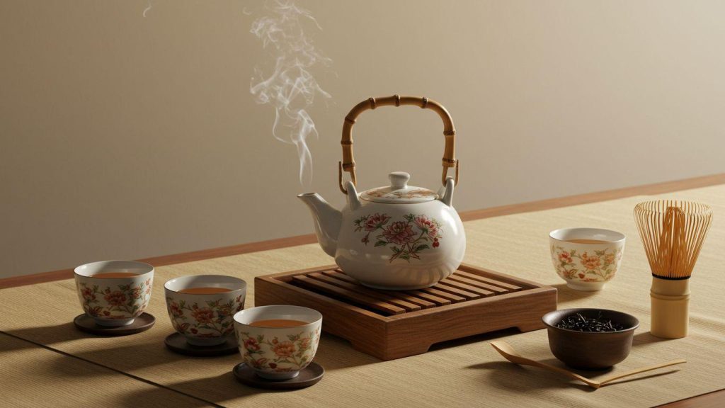 - Коврик или подставка для размещения чайного набора.