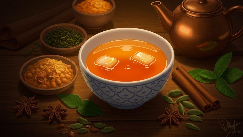 Тайский чай отличается глубоким ароматом, напоминая смесь карамели, специй и цветочных нот. Это объясняется способом обработки чайного листа, включая ферментацию и особые методы сушки, при которых сохраняются натуральные эфирные масла. Комбинация специй, таких как кардамон и анис, также часто присутствует в рецептах, что придаёт напитку дополнительный оттенок.
