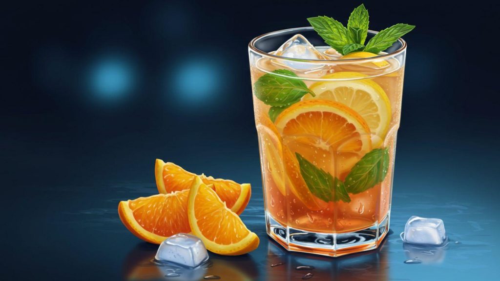- Перед подачей положите в стакан лед и дольки апельсина для украшения.