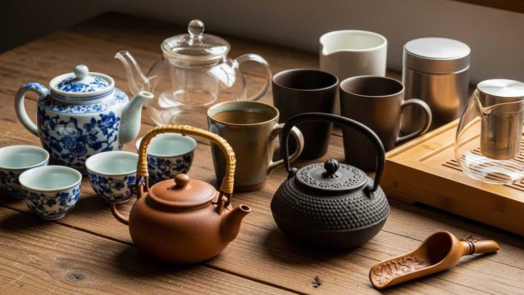 При выборе посуды учитывайте специфику чаёв, которые планируете заваривать. Для зелёного и белого чая подойдут прозрачные стеклянные модели или тонкие фарфоровые чайники, позволяющие контролировать процесс и цвет настоя. Чёрные и улунские чаи лучше раскрываются в глиняной, чугунной или керамической посуде.